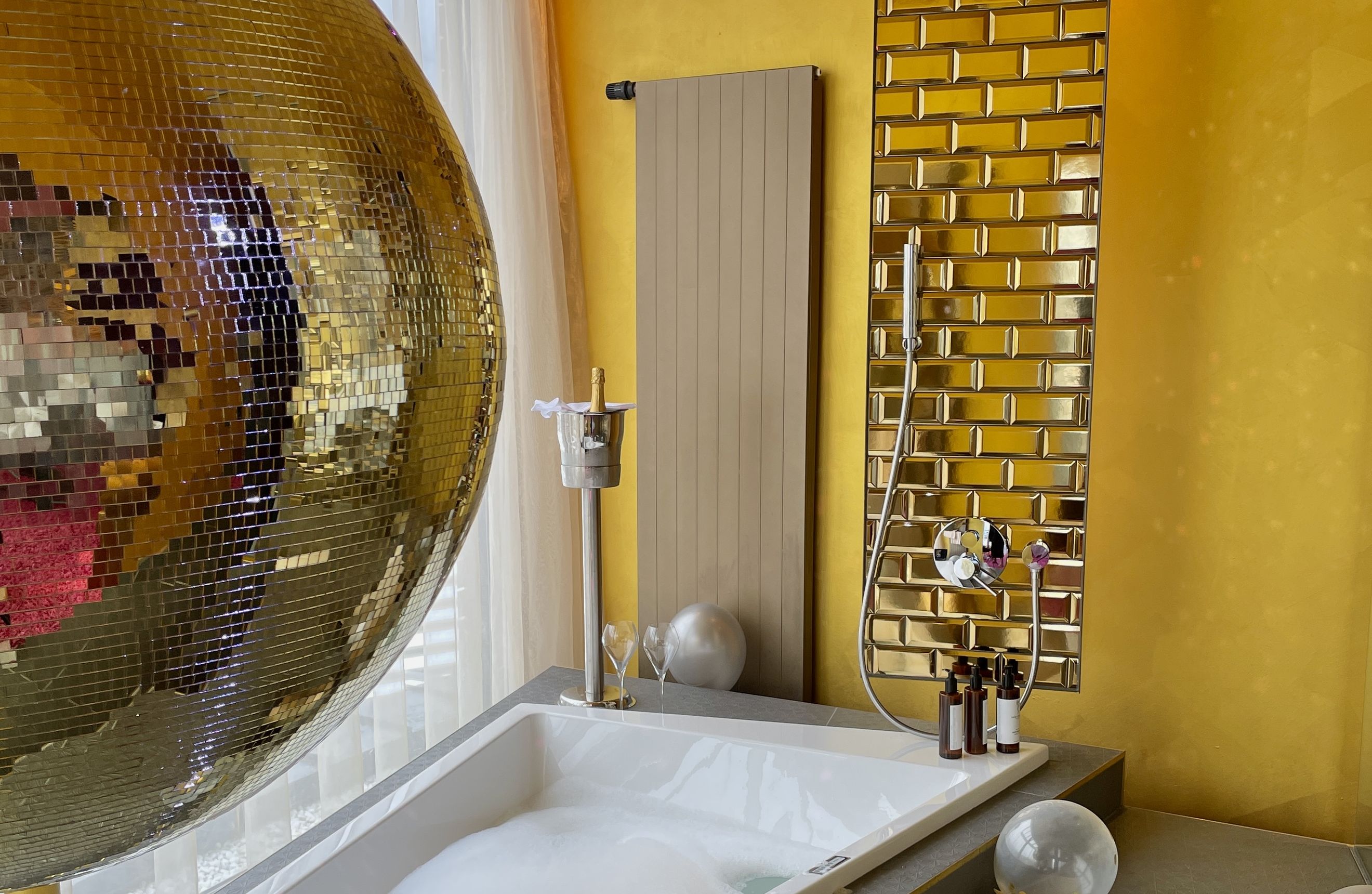 Die „Oh my God Suite“ liegt am höchsten Punkt des Hotels, mit einem großartigen Überblick. Sie erstrahlt in hellem Glanz mit Farbakzenten aus hellblau und pink kombiniert, Messing und Goldaccessoires sorgen für einen unbeschreiblichen Wow-Effekt.